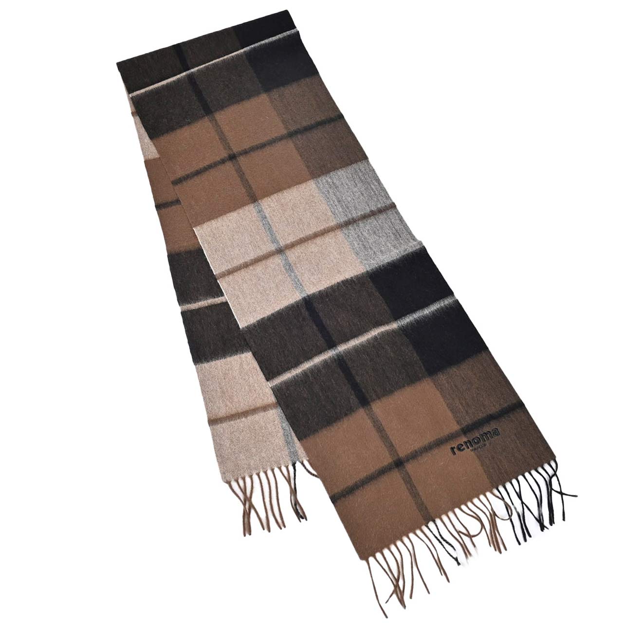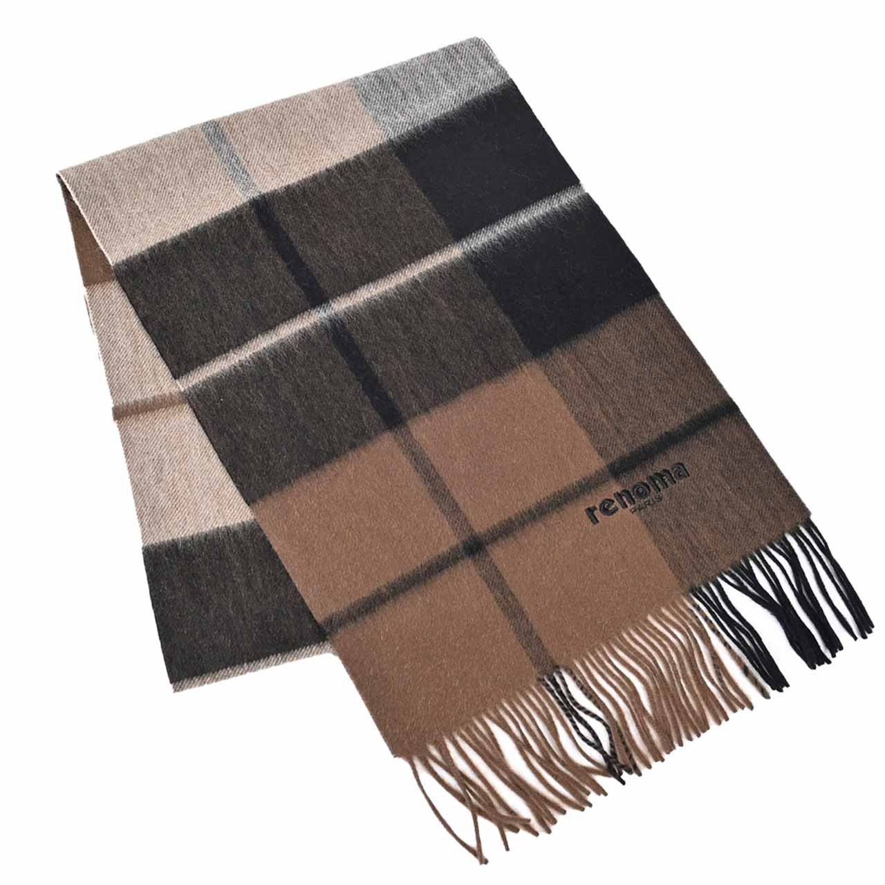 レノマ RENOMA マフラー R9919 CHECK CASHMERE RX5 ブラウン  メンズ レディース
