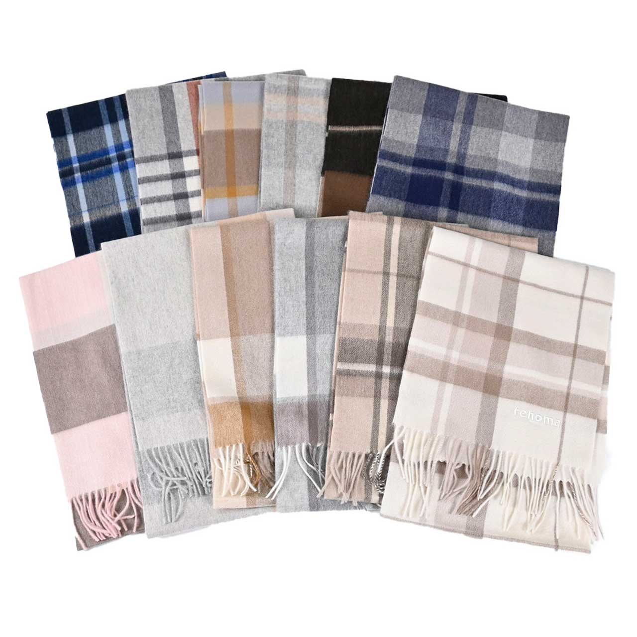 レノマ RENOMA マフラー R9919 CHECK CASHMERE RX5 ブラウン メンズ レディース