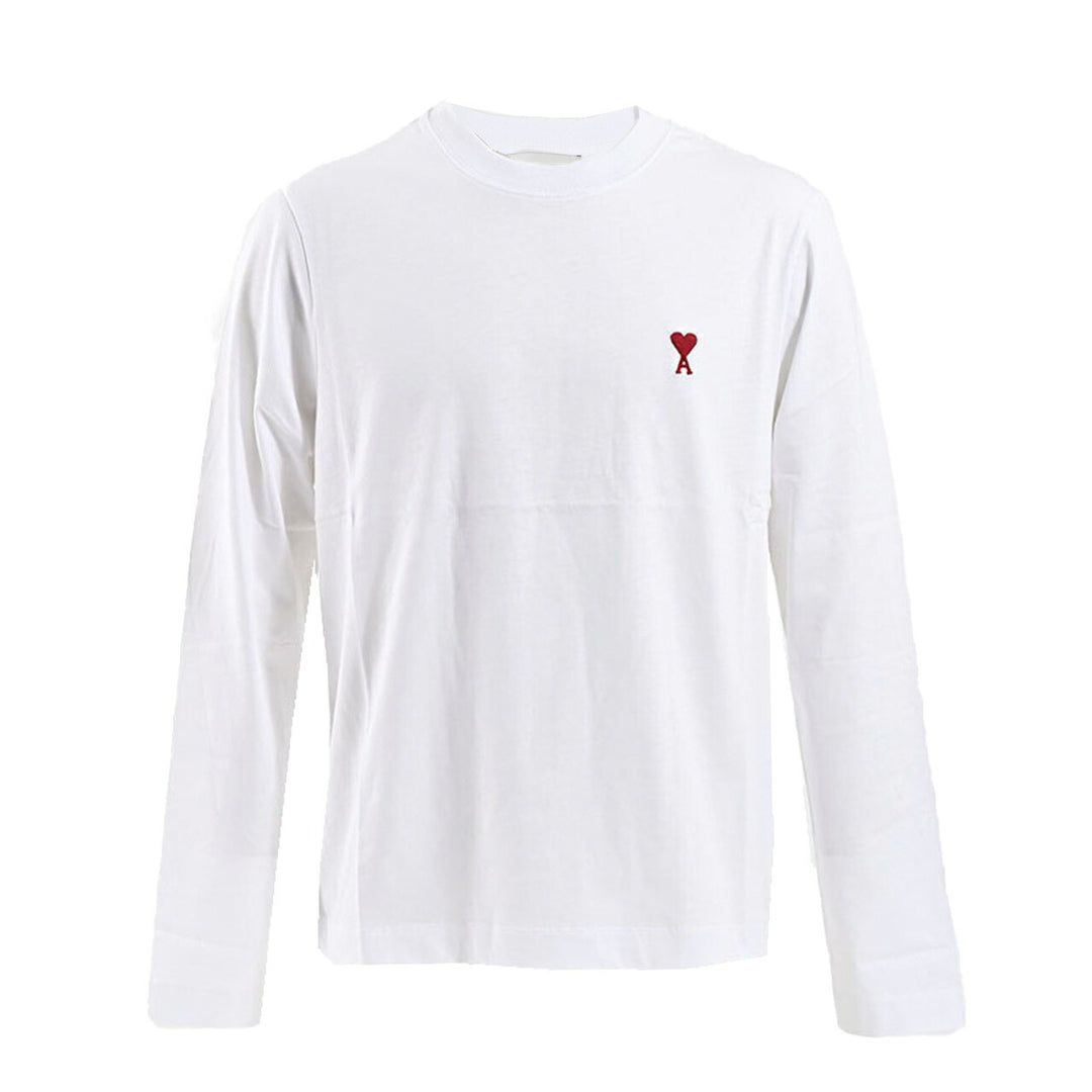 アミ AMI クルーネック長袖Tシャツ BFUTS235.724 100 ホワイト 2025SS メンズ