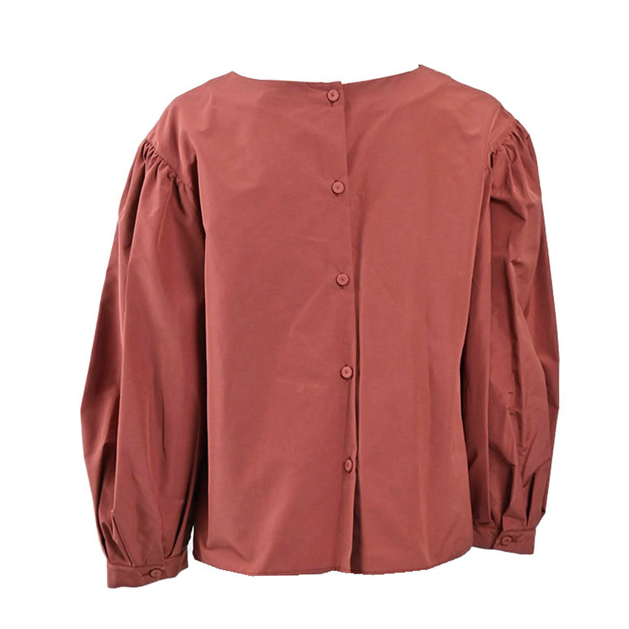 海外オフィシャルサイトでの紹介コメント 『軽くて貴重な先染めコットンブレンドタフタを使用したクルーネックブラウス。このモデルは、ボリュームのあるパフ付きのロングセットインスリーブが特徴で、裾のギャザーパターンとボタン付きの袖口が特徴です。シルエットはストレートでややクロップド丈で、後ろは生地で覆われたボタンで留められています。』 【訳アリ箇所:素材の特性による染ムラのような箇所がございます 】 ※ワケアリ商品の為、返品・交換は致しかねます。ご了承いただきますようお願いいたします。